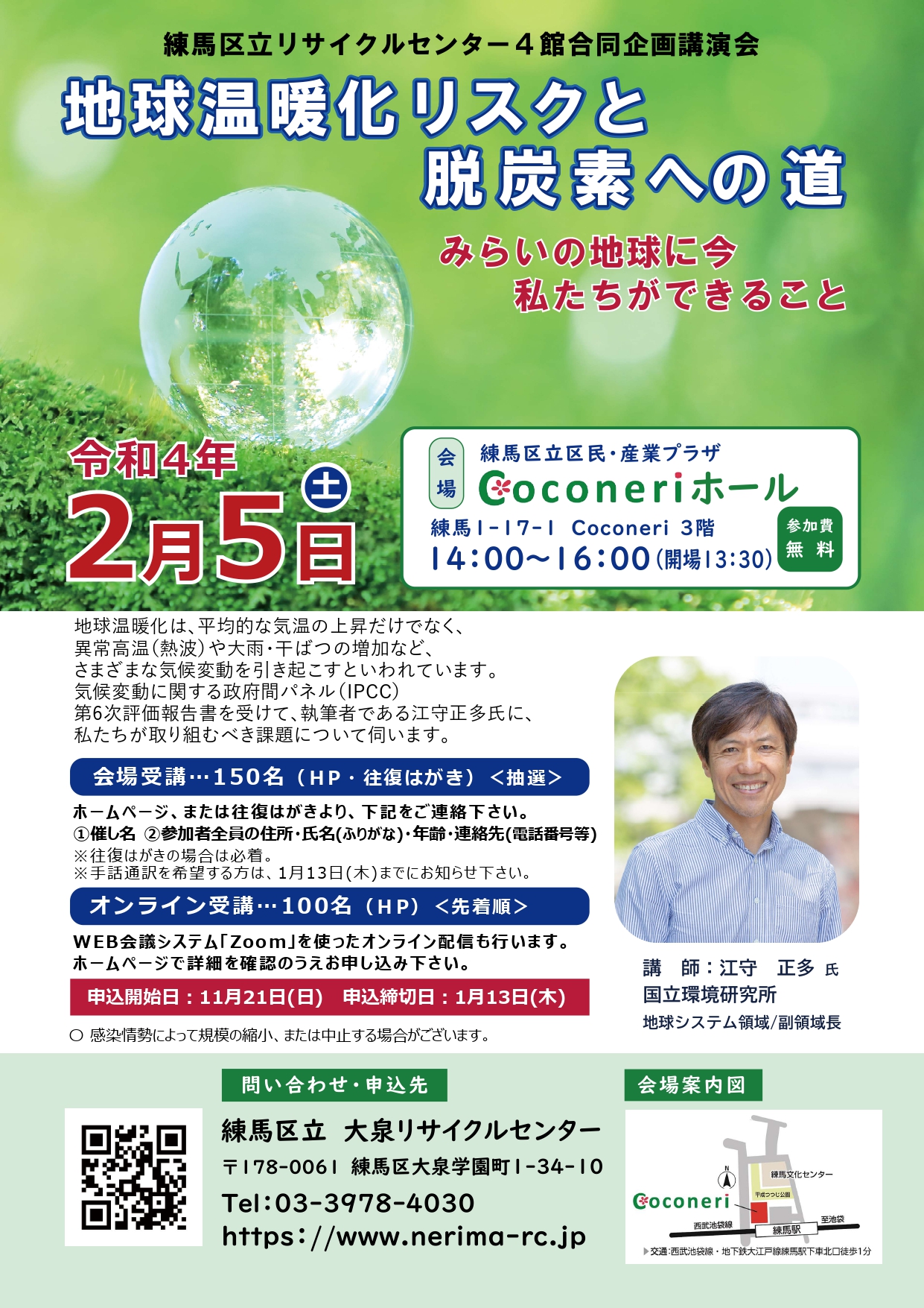 練馬区立リサイクルセンター4館合同企画講演会のお知らせです。