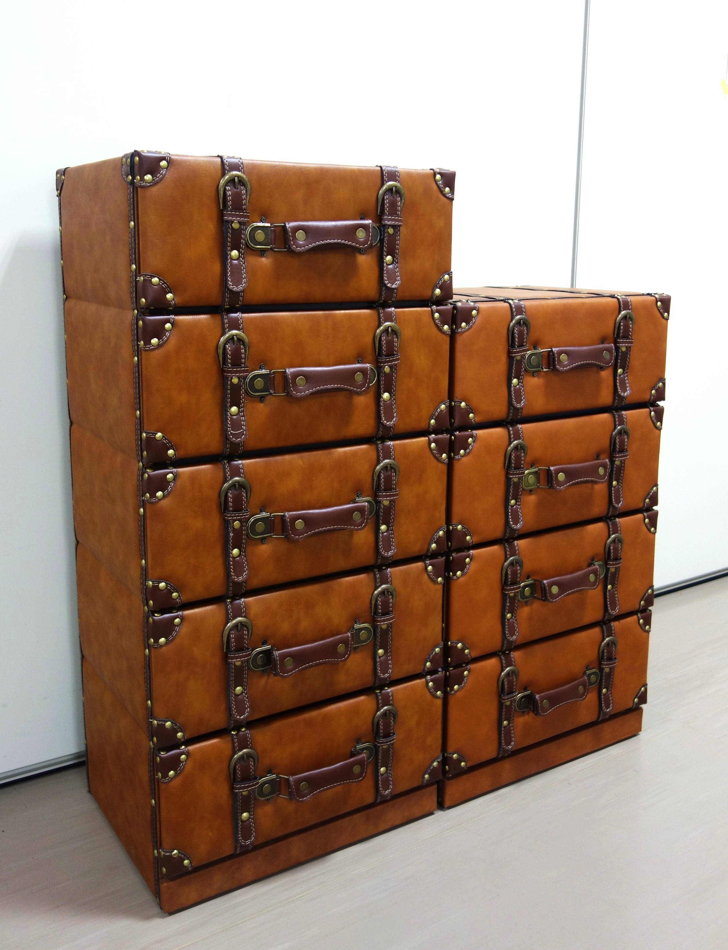 大泉リサイクルセンター抽選家具の一覧 チェスト2点セット ¥4,800- 家具NO. 254802 254801 概要 古いトランクをモチーフにしたヴィンテージ風チェスト。味わいのある合皮レザーと使い込んだような金具のデザインがおしゃれで、インテリアを引き立てます。2点セットでの販売です。 寸法 大:横幅42cm 奥行32cm 高さ90cm、 小:横幅42cm 奥行32cm 高さ73cm