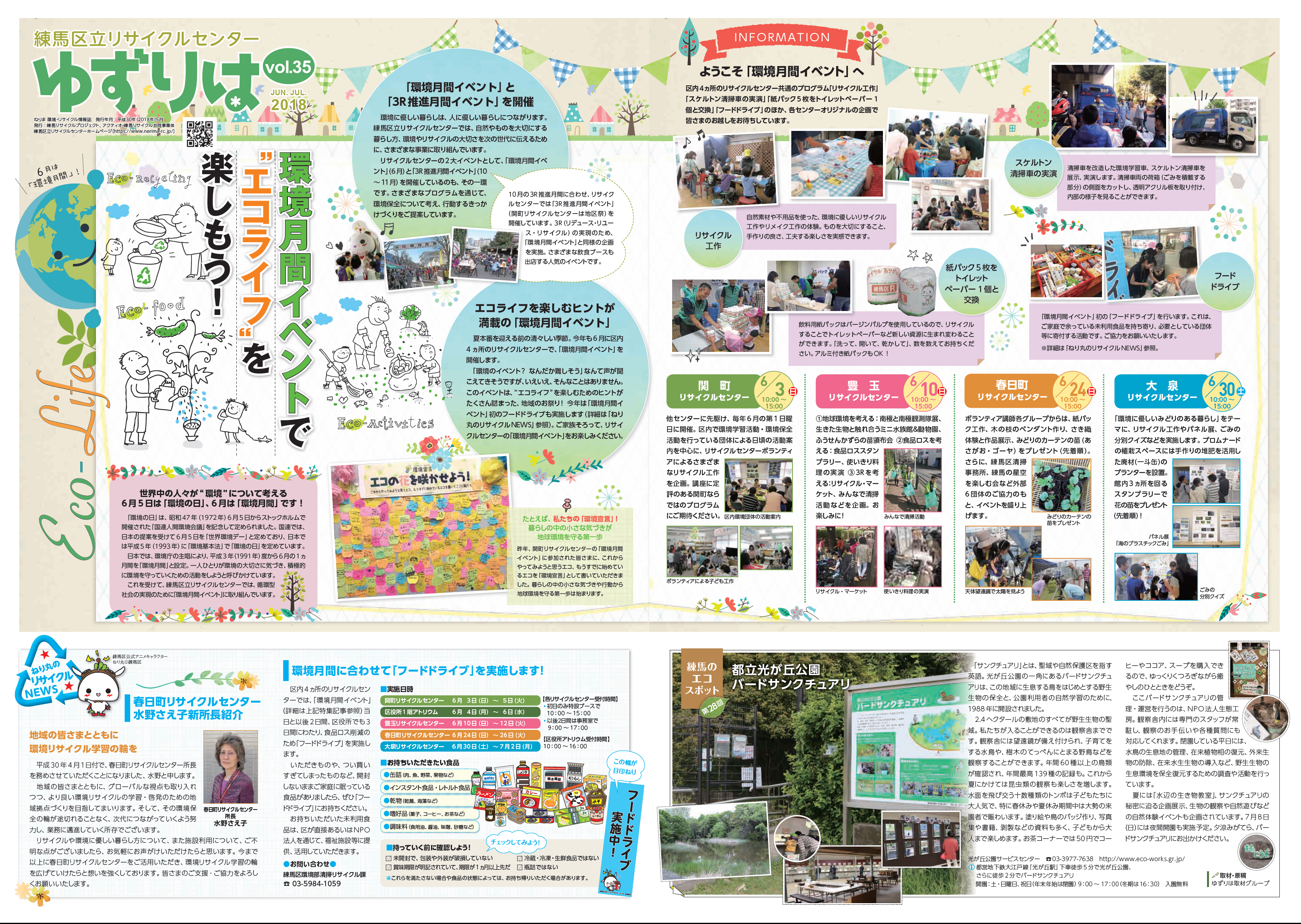 これを受けて、リサイクルセンターでは6月に「環境月間イベント」を開催します。特集面では、関町、春日町、豊玉、大泉の各センターで行われるイベントの特徴などをご案内しています。皆様のお越しをお待ちしています。