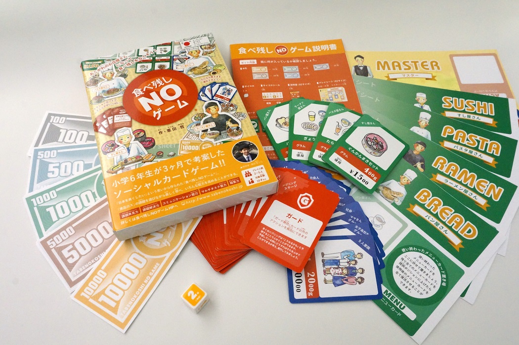 たべのこし概要"食べ残しnoゲームとは、当時小学6年生だった男の子のアイデアからうまれた食品ロス問題を提起するカードゲームです。課題や解決方法などが盛り込まれ、ゲームをしながらSDGsを学ぶことができます