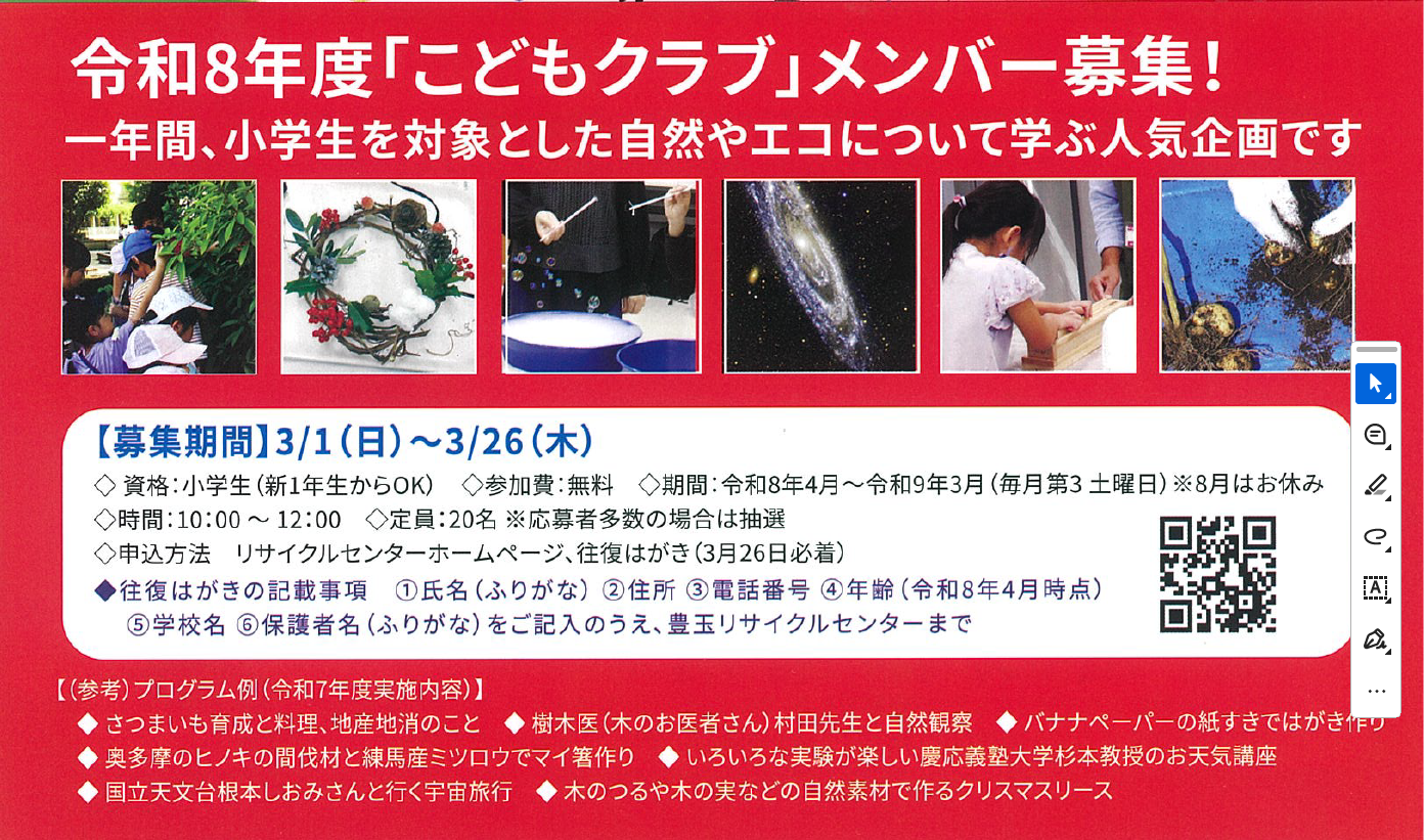 令和8年度 豊玉リサイクルセンターこどもクラブメンバー募集